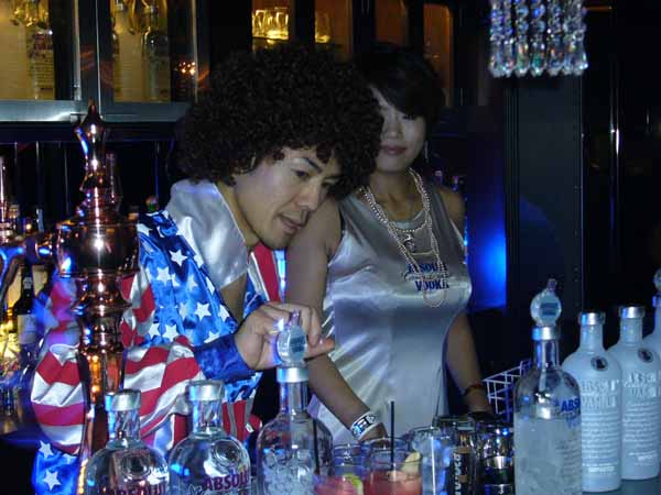 レセプションパーティで素敵なおもななしを頂戴して以来、再会を殊の外楽しみにしていたスーパーバーテンダーの漆戸さん(※愛称MASAさん)は、ヤングマン(?・笑)+アフロヘアの装い+握手(大感激!)で。