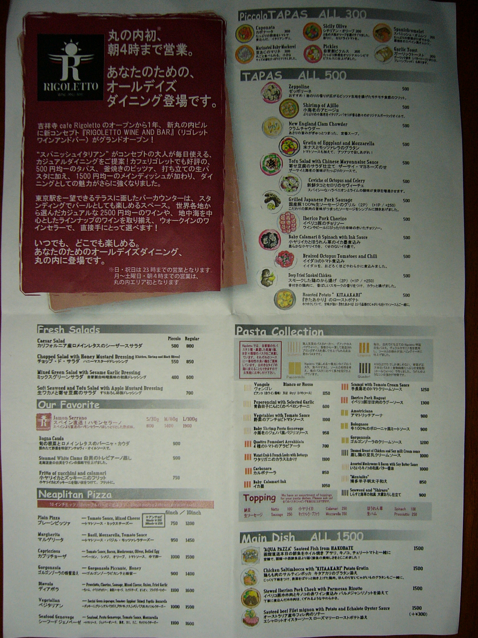あまりに嬉しかったので、私は、頂戴したメニューをジャケットの胸ポケットにしまった。