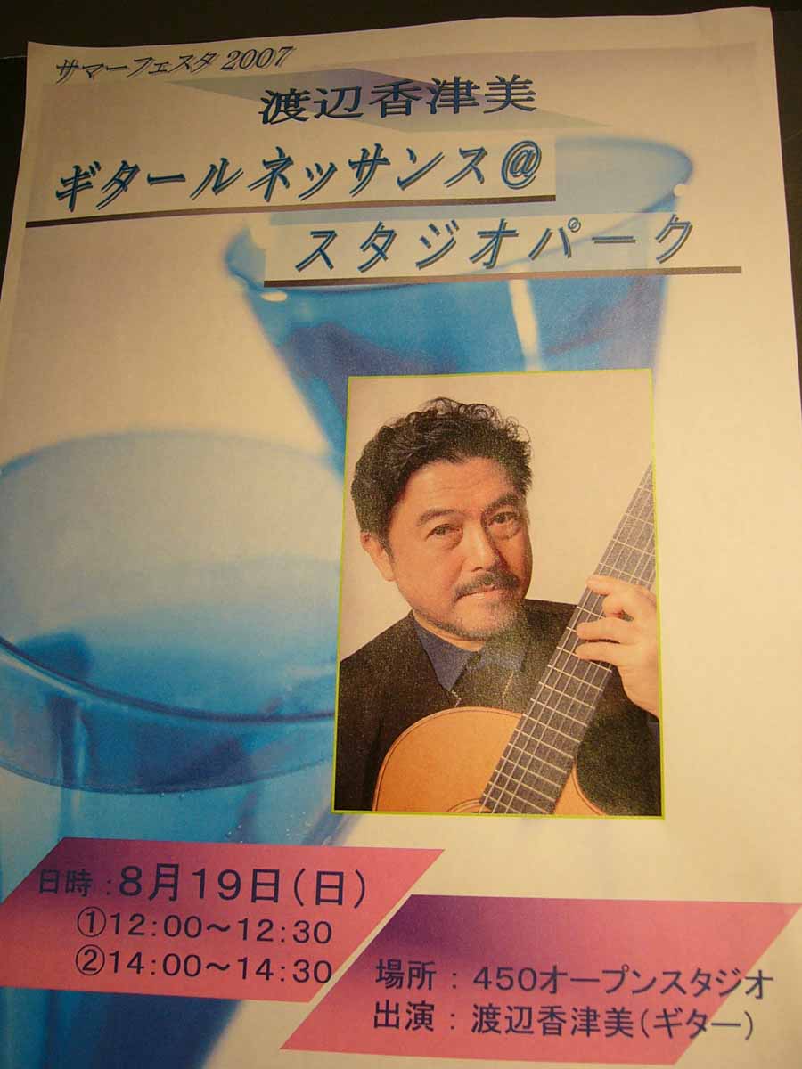 昨日、私は、その”人生の師”である渡辺さんが本日NHKのスタジオパークでミニライブを行うことを、mixiの渡辺香津美コミュで知った。