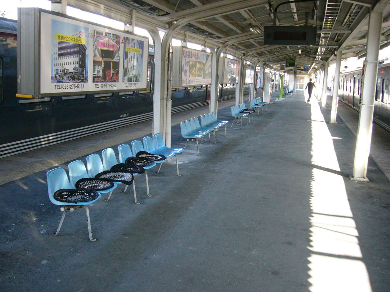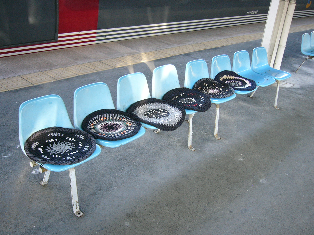 駅のベンチシートの約三分の一に、手作りらしき座布団が載せられていた。