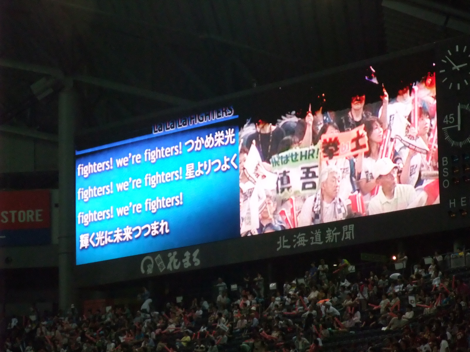 この観客席の不断の賑わいのお陰で、私は、隣席のファイターズ大好きオトーサン(笑)からご縁を授かりました。