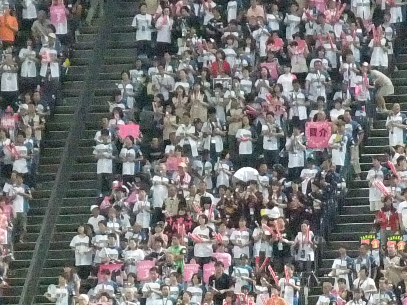 夏休みの日曜のデーゲームかつマー君(田中将大投手)の予告先発も手伝ってか、場内は一塁側も三塁側も外野もお客さまでいっぱいでした(※報道曰く観客動員数は約32千人)。