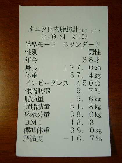 そう言えば、先月末、区営ジムへ行った際に体脂肪を計ったら、ついに10%の大台を切り、9.7%になっていた。(※添付画像にエビデンス有り。笑)